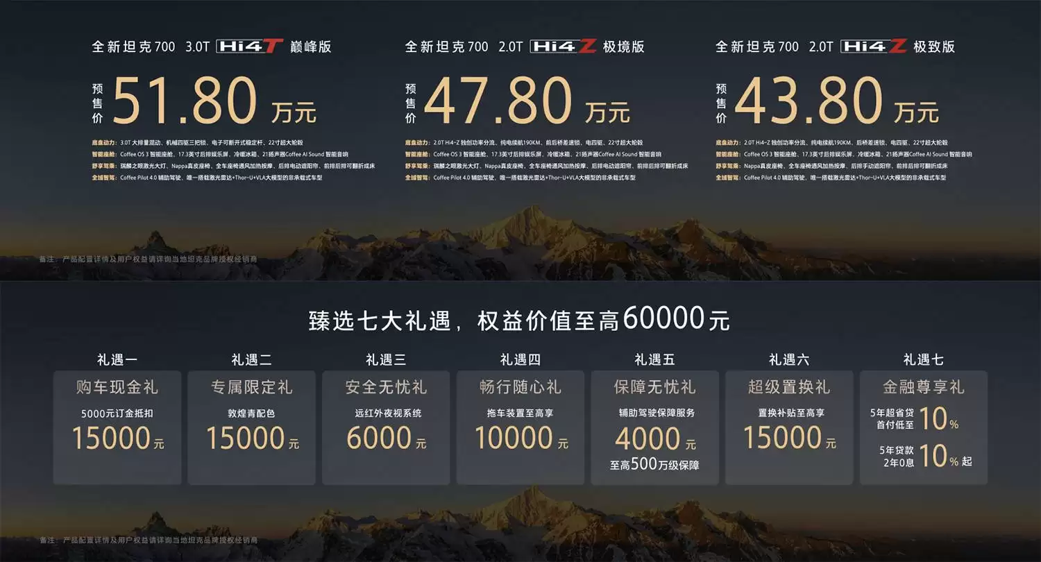 坦克700预购43.8万起:双动力配置重塑硬派越野新标杆
