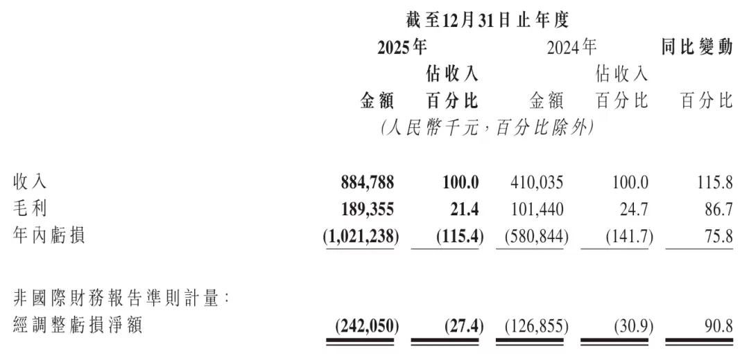 希迪智驾2025年毛利为1.89亿元,较上年同期的1亿元增长86.7%。希迪智驾2025年年内亏损10.21亿,较上年同期的5.81亿元扩大75.8%。希迪智驾2025年经调整净亏损2.43亿,较上年同期的经调整净亏损1.27亿扩大90.8%。