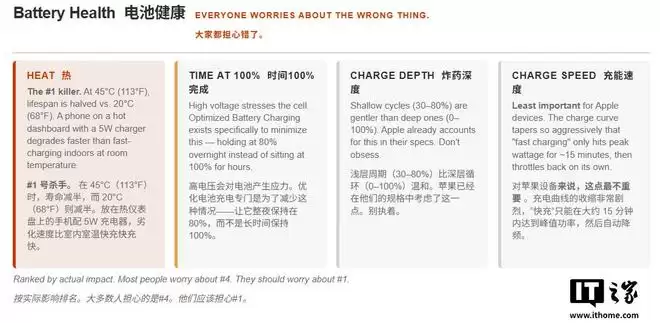 许多人担心使用大功率充电器会损害电池寿命,不过该媒体指出这种观念已经过时,苹果内置的电池管理系统会智能调节输入功率。