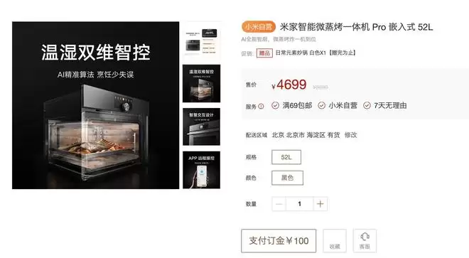 近期,小米有品上架了一款米家智能微蒸烤一体机 Pro 嵌入式 52L,定价 4699 元。米家智能微蒸烤一体机 Pro 主打 AI 精准算法,减少烹饪失误率,同时配备 TFT 大彩屏,支持智慧交互。