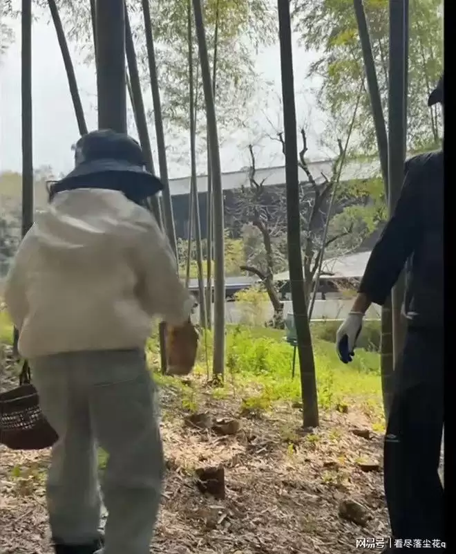 王阳还带着女儿去了竹林里挖笋,现在还没有太多春笋,大多都是冬笋,王阳挖了一颗冬笋,然后宠溺地递给在旁边提着小篮的Molly,看样子收获很多。晚上就直接在酒店吃饭,白天挖的笋就直接进了锅,满满一桌很是丰盛。
