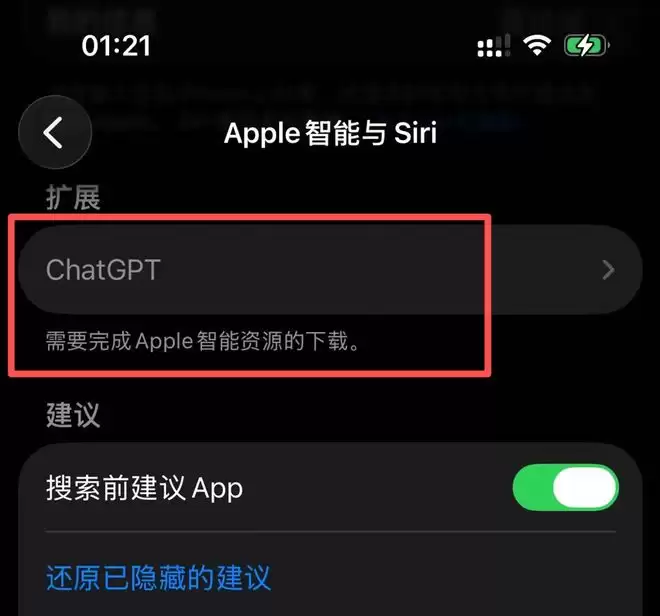 PChome 3月31日消息,苹果Apple Intelligence国行Beta版上线,获得推送升级的用户,原有的“Siri”设置将被替换成“Apple智能与Siri”,并开放下载Apple智能模