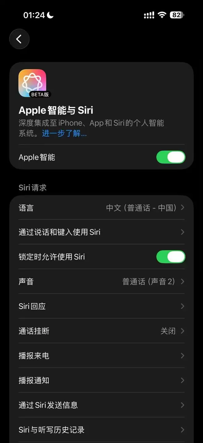中国大陆部分用户发现“Apple智能与Siri”上线
