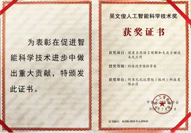 吴文俊人工智能奖出炉:阿里达摩院获唯一特等奖