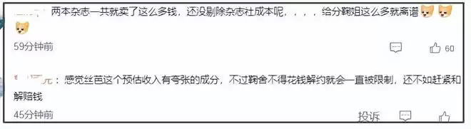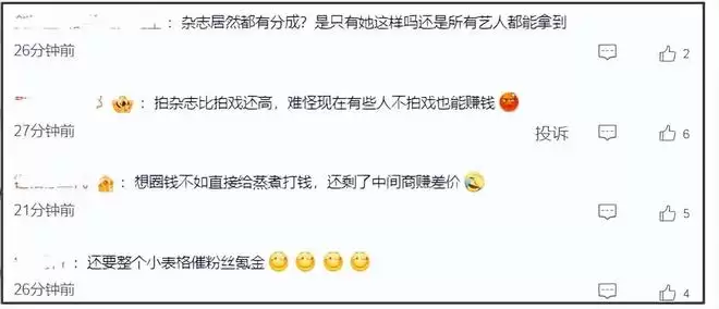 而且杂志主办方不可能没有分成,让鞠婧祎全拿,从而质疑丝芭夸大事实收入。但是,大量的网友都从这个收入情况发现一个残酷事实,明星拍杂志比拍戏还赚,不知中间有没有什么猫腻。