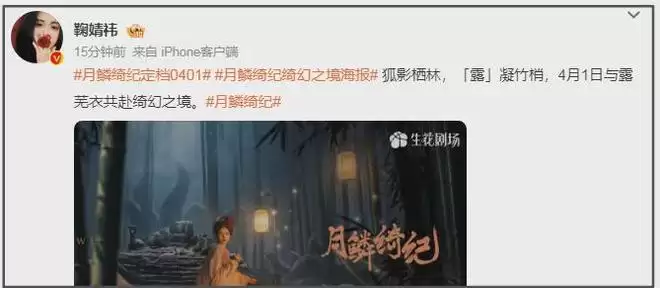 尽管鞠婧祎税务问题登上热搜,但是鞠婧祎和剧方都没慌,照旧官宣新剧定档,丝毫不在意税务问题,评论区的粉丝都还积极控评。