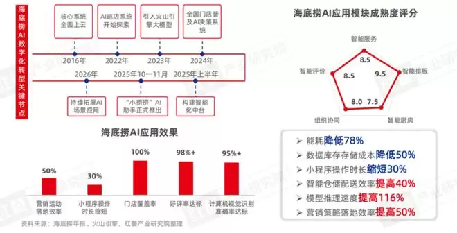 例如,海底捞自主研发的AI智慧巡检系统深度应用了CV技术,目前已实现全国所有门店100%覆盖。该系统依托计算机视觉与边缘计算技术,实现了2小时闭环管理,识别准确率超过95%,有效保障了服务标准的统一落地,推动门店好评率稳定在98%以上。