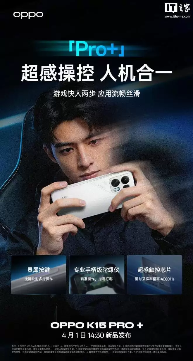 IT之家 3 月 31 日消息,OPPO 最新今天在微博发文,公布 K15 Pro+ 手机的详细参数。