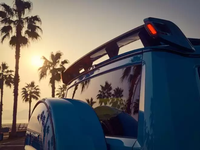 敦煌青车漆采用高精度涂装工艺,其色浆细度、喷涂精度、耐候性、抗刮擦及轻微划痕自修复能力达到豪华车型应用标准。车辆同时提供千峰翠、玄武黑、远山灰等常规车色选择。其中敦煌青搭载的纳米陶瓷清漆,拥有行业头部标准的抗刮擦能力,根据最新数据,以9μm级砂纸往复刮擦其10次,相当于用沙子短时间反复挤压漆面,光泽损失率不超过35%。车尾增配全新设计的硬派专属尾翼,尾翼带有灯光,使用流线型扰流筋、水滴形双支撑支架、双侧倒斜面导流等特殊设计降低风噪。