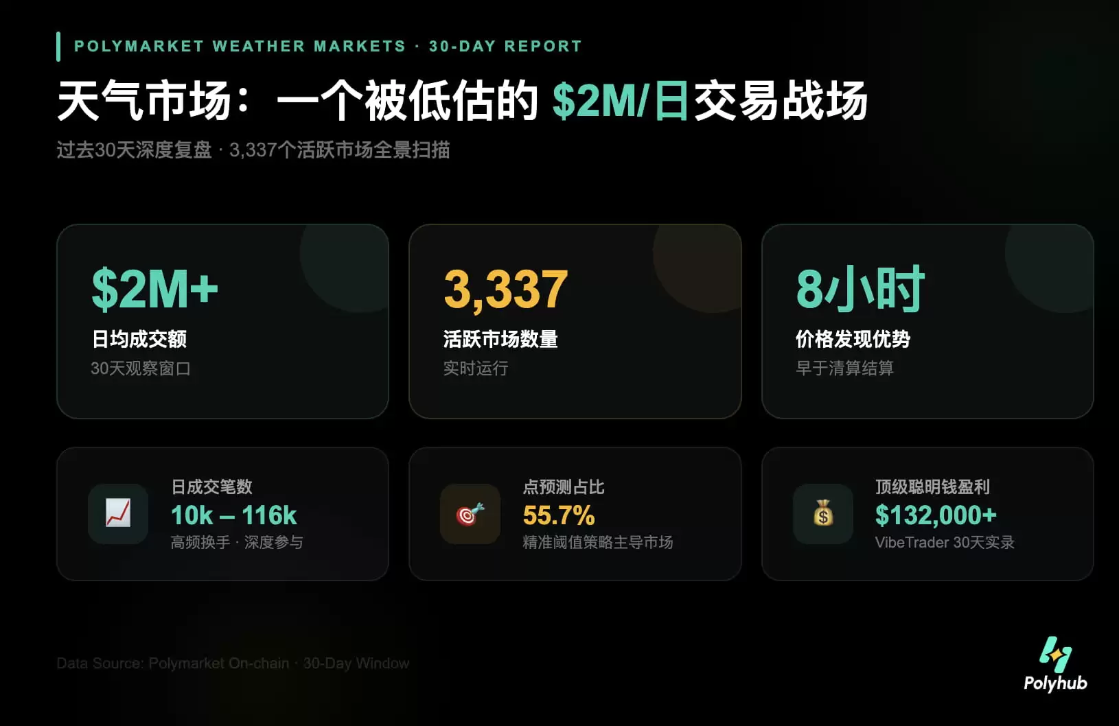 - Polymarket 天气预测市场已从边缘玩法发展为日均成交额 $2M 的专业交易战场。