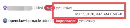 说来也巧,就在昨天实际使用OpenClaw时,意外发现了一个小Bug。于是,我按照流程给官方提交了一个issue。结果如何?过程远比想象中更有意思,且听详细分解。
