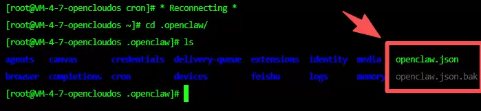 登录服务器查看,果然找到了对应的`jobs.json`文件。根据之前的经验,OpenClaw在修改定时任务时,理应会生成一个备份文件`jobs.json.bak`。