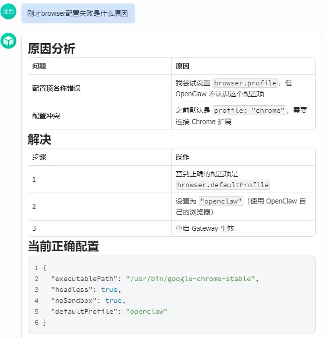 事情要回溯到调试《我用OpenClaw,5分钟写出一个程序(第2讲)》时遇到的问题。当时,OpenClaw帮我精准分析出一个浏览器配置异常。