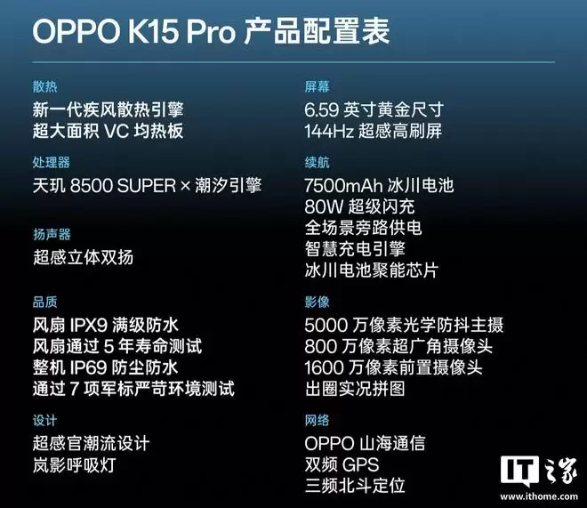 IT之家注意到,OPPO K15 Pro 手机已现身正式,并公布了核心配置信息,IT之家附如下: