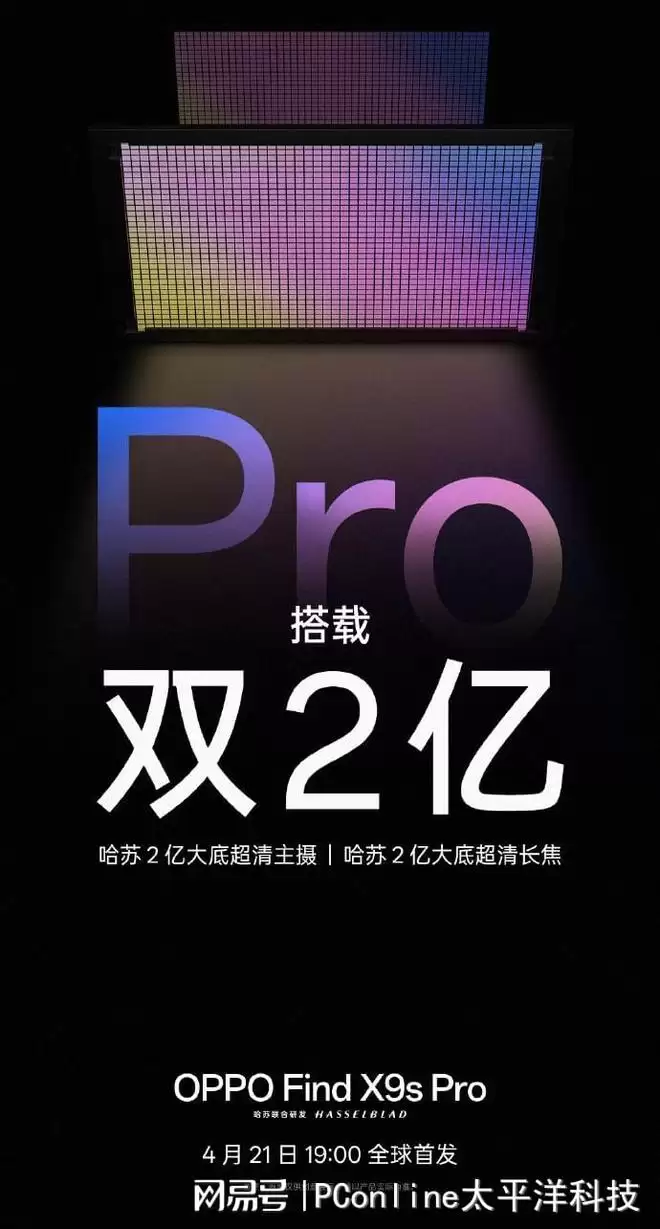 3月31日消息,OPPO正式宣布将于4月21日举办OPPO × 哈苏影像新品联合发布会,届时全新Find X9系列影像旗舰将集中亮相。随着预热信息陆续放出,定位Pro档的Find X9s Pro凭借“同档唯一双2亿像素”配置成为关注焦点。