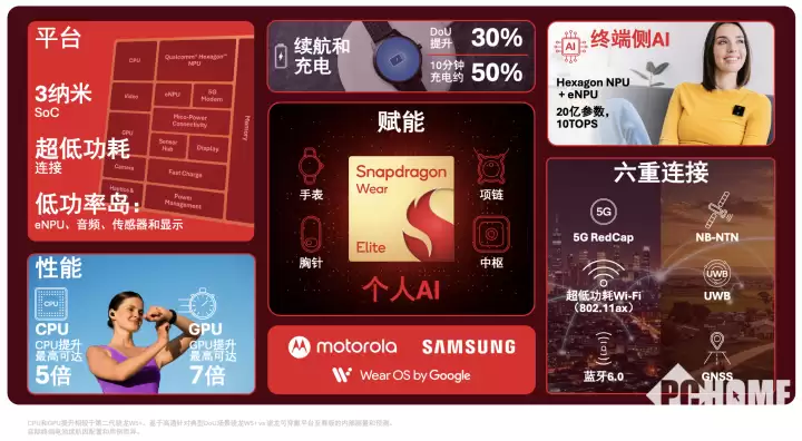 高通技术公司的高层对此的阐述更为透彻。其执行副总裁兼手机、计算和XR事业群总经理阿力克斯・卡图赞表示,骁龙平台正在重塑个人计算的形态,其方式是赋能一个全新的个人AI终端品类。这些终端将成为分布式AI网络的主动参与者,覆盖从移动、计算到XR、可穿戴的广阔领域。而骁龙可穿戴平台至尊版,正是这一战略的关键承载者——它集成了专用的NPU来处理终端侧AI任务,并整合了一整套超低功耗连接方案。更重要的是,它成为了全球首款能同时兼容Wear OS by Google™、Android与Linux三大系统的可穿戴平台,这为其生态拓展奠定了罕见的基础。