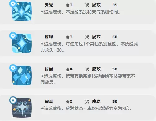性格的选择上,要想让输出更上一层楼,那就应该选择保守,还有马虎。胆小还有开朗就可以提升速度,靠着120的基础速度就可以抢占先手。实战过程中就可以开魔法增效去叠加魔攻,用漫反射去提升各个技能的威力,然后根据战局去切换输出技能。面对高防敌人时,就可以用锐利的眼神去降低防护,应对状态敌人时,可以用偷袭或者是突袭。灵活多变的打法就会让他适应PVE推图,还有PVP对战。
