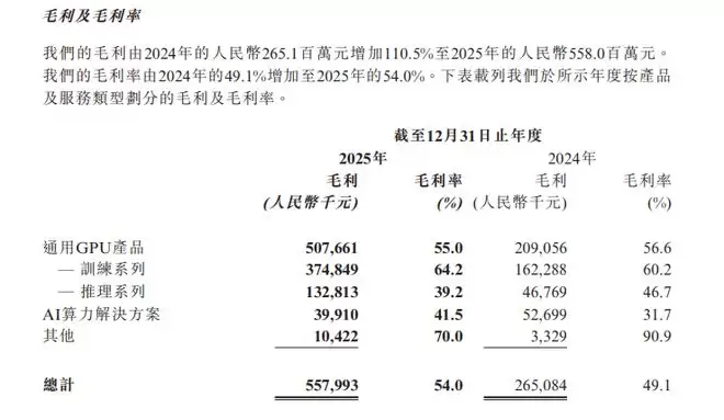 财报显示,天数智芯2025年毛利率从49.1%提升至54.0%。其中,训练系列毛利率从60.2%提升至64.2%,显示出天数智芯议价能力的增强;而推理系列毛利率从46.7%下降至39.2%,公司则解释为通过主动降价牺牲短期利润,以抢占市场份额并加速库存销售。