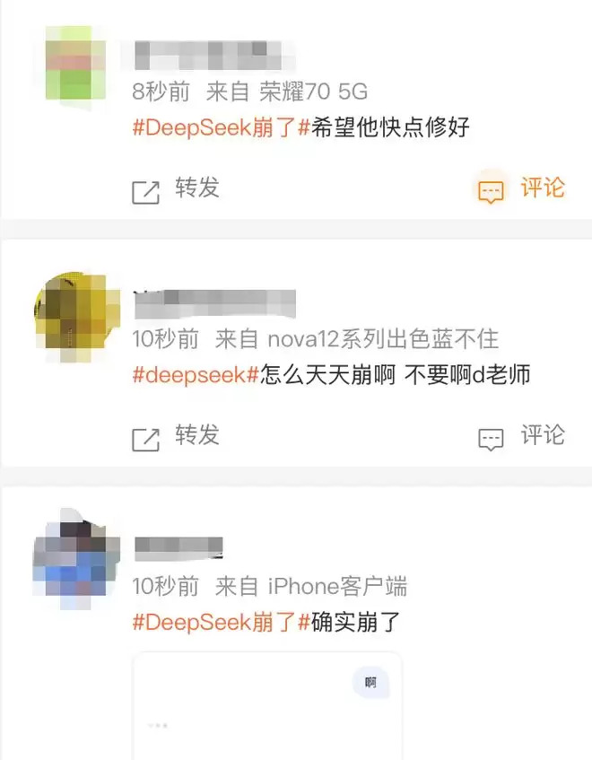 目前,话题Deepseek崩了也已登上微博热搜。