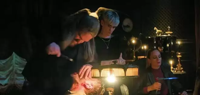 女孩邦斯(麦迪·齐格勒饰)意识到不对劲转身就跑,结果没跑多远就被拦下,打晕拖走。