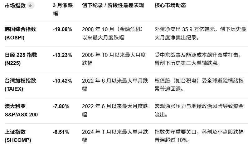 分析人士指出,伊朗战事引发的国际能源价格飙升及地缘政治避险情绪,令高度依赖能源进口的日韩两国供应链及企业盈利预期受损。美联储降息预期在通胀压力下受阻,进一步加剧了资金流出压力。