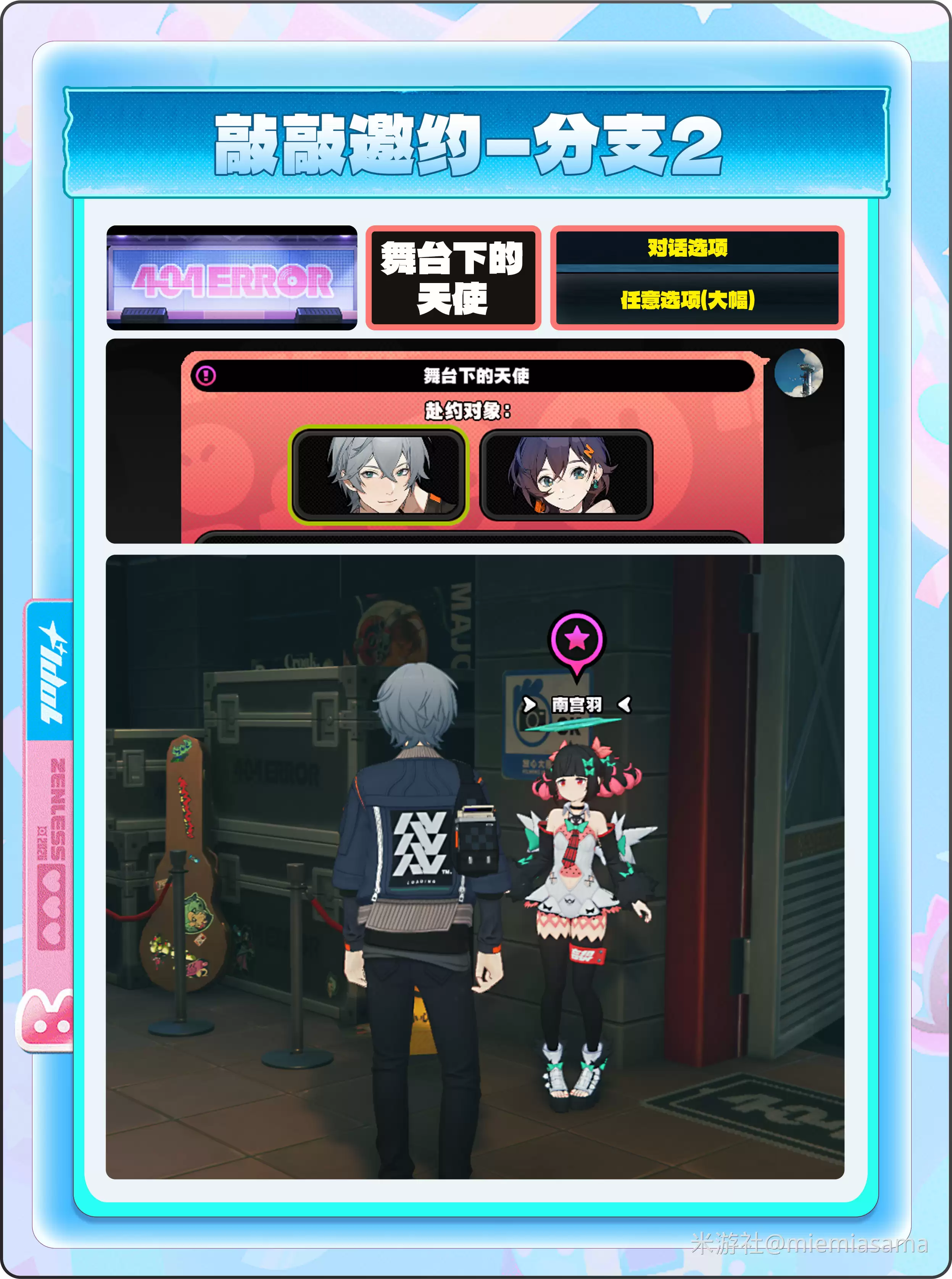 绝区零南宫羽邀约选项一览,本文介绍的是新代理人【南宫羽】信赖度快速提升方案。【敲敲邀约】大幅提升方案,以下仅为个人建议的选项路线,可供玩家参考。