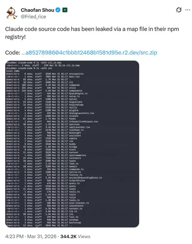 编辑 | 王凤枝一个59 8MB的map文件,把Anthropic最核心的编程产品扒了个干净。这不是黑客攻击,不是内部泄密,就是发布时忘了删。3月31日,安全研究员Shou Chaofan在npm注