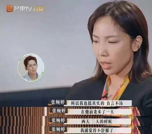 节目里的他,永远是沉默的那一个,张婉婷发脾气,他不说话;张婉婷抱怨,他低着头;张婉婷哭着闹着要安全感,他一脸无辜,一言不发。