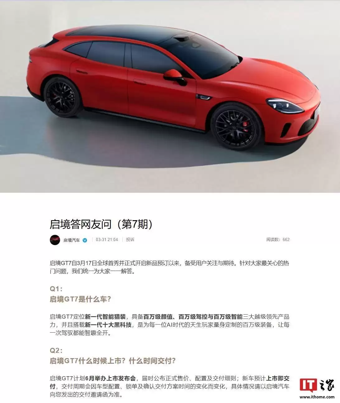 据启境汽车官方消息,原定于7月启动交付的GT7车型将提前至6月上市。品牌方透露,6月举办的上市发布会将同步公布车型售价、配置清单及交付细则,并承诺“上市即交付”。不过,实际交付周期可能因用户选择的配置版本、锁单时间及交付方案确认进度产生差异。这一调整显示出品牌对供应链管理和生产节奏的充分信心。