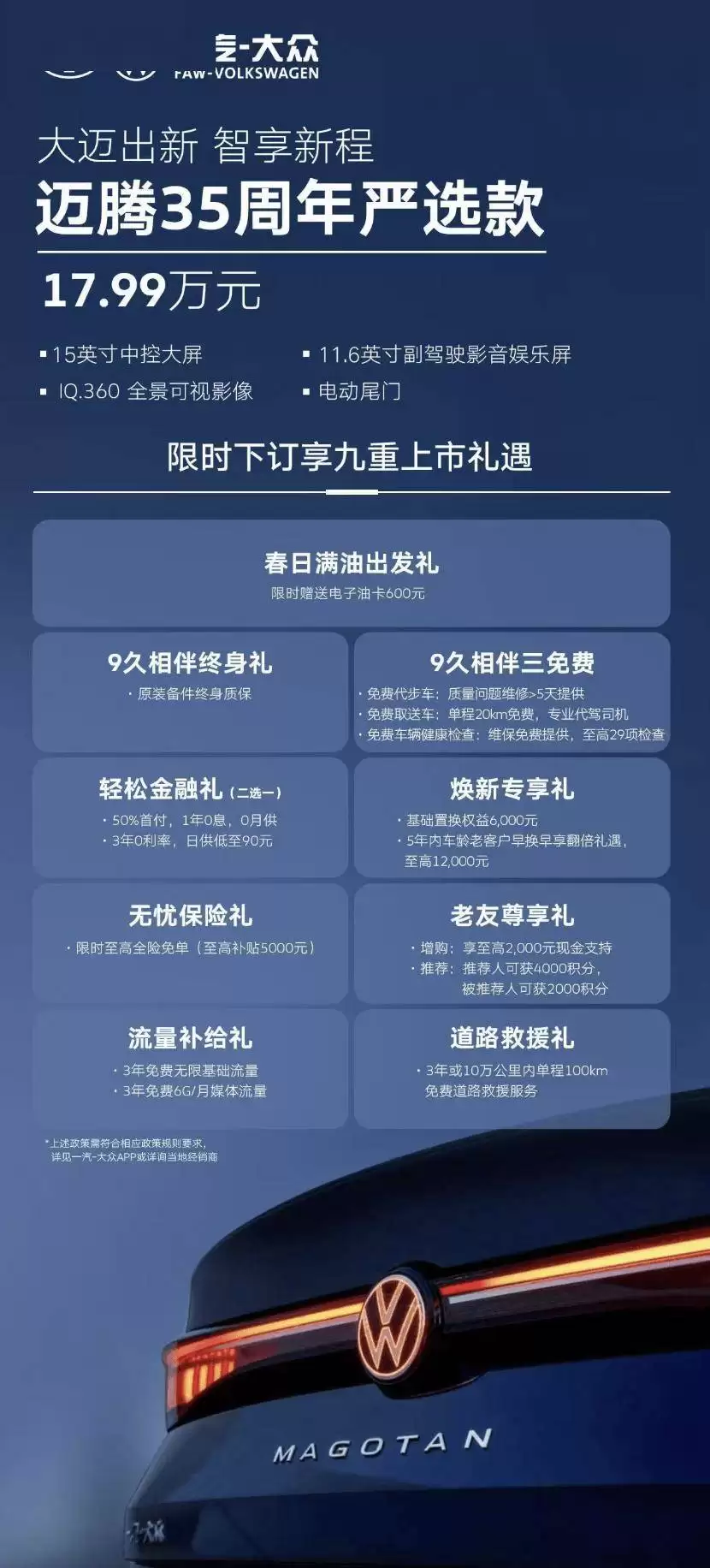 一汽大众迈腾35周年纪念版亮相:17.99万享矩阵大灯与L2智驾