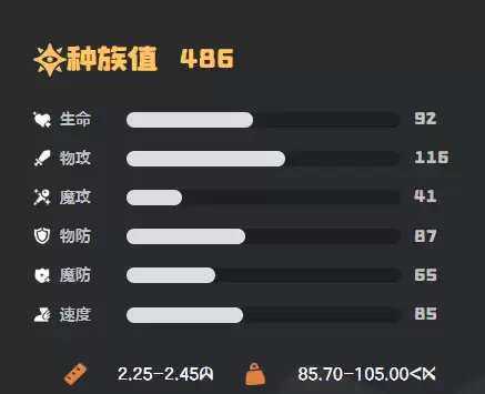 洛克王国世界骨龙强度怎么样?洛克王国世界骨龙是一位兼具高爆发与极致生存能力的顶级物攻系精灵,总种族值达486,其中物攻资质高达116,生命值92,物理防御87,速度85——虽非顶尖