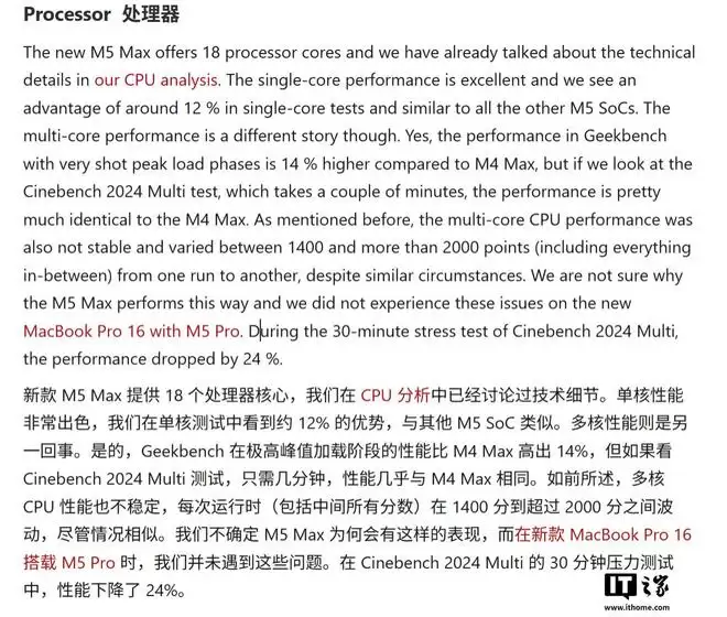 外媒实测:苹果M5 Max版MacBook Pro多核性能波动引争议