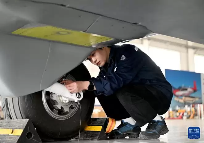 3月30日,在河南郑州上街机场,工作人员在试飞前检查运投无人机长鹰-8轮胎。 3月31日上午,我国首款7吨级固定翼运投无人机长鹰-8在郑州上街机场首飞成功。 长鹰-8运投无人机是国内首款通过实机验证的7吨级无人运投平台,被誉为“空中重卡”,填补了我国7吨级货运无人机平台空白,标志着我国在高端智能航空物流装备领域取得关键自主技术跨越。 该款运投无人机可应用于远程物流运输、应急救援投送、边境物资补给、复杂地域作业等场景,为低空经济发展、应急保障体系建设提供装备支撑,最大航程超过3000公里。 新华社记者 郝源 摄