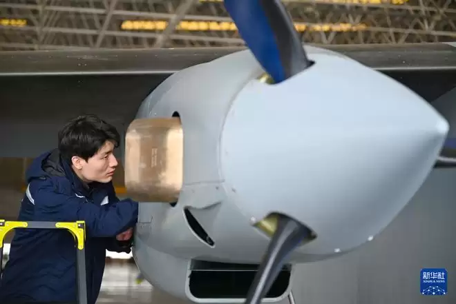 3月30日,在河南郑州上街机场,工作人员在试飞前检查运投无人机长鹰-8发动机线路。 3月31日上午,我国首款7吨级固定翼运投无人机长鹰-8在郑州上街机场首飞成功。 长鹰-8运投无人机是国内首款通过实机验证的7吨级无人运投平台,被誉为“空中重卡”,填补了我国7吨级货运无人机平台空白,标志着我国在高端智能航空物流装备领域取得关键自主技术跨越。 该款运投无人机可应用于远程物流运输、应急救援投送、边境物资补给、复杂地域作业等场景,为低空经济发展、应急保障体系建设提供装备支撑,最大航程超过3000公里。 新华社记者 郝源 摄