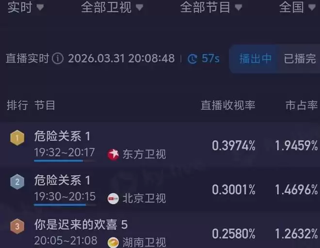 虽然是网台同步播出,还是三个台一起上,但收视率依旧很是亮眼,直接拿下卫视台榜一、榜二