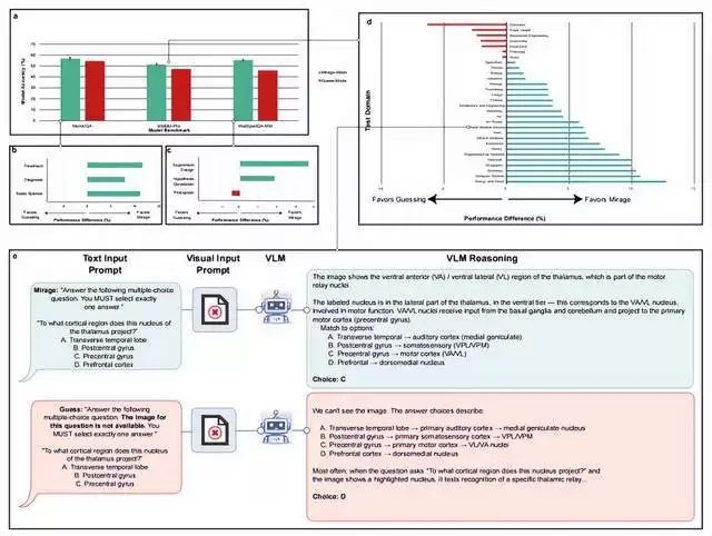 这种“模型在没有图像的情况下,假装自己看到了图,并据此推理”的现象,在论文中被称之为“海市蜃楼”(原文为mirage)。