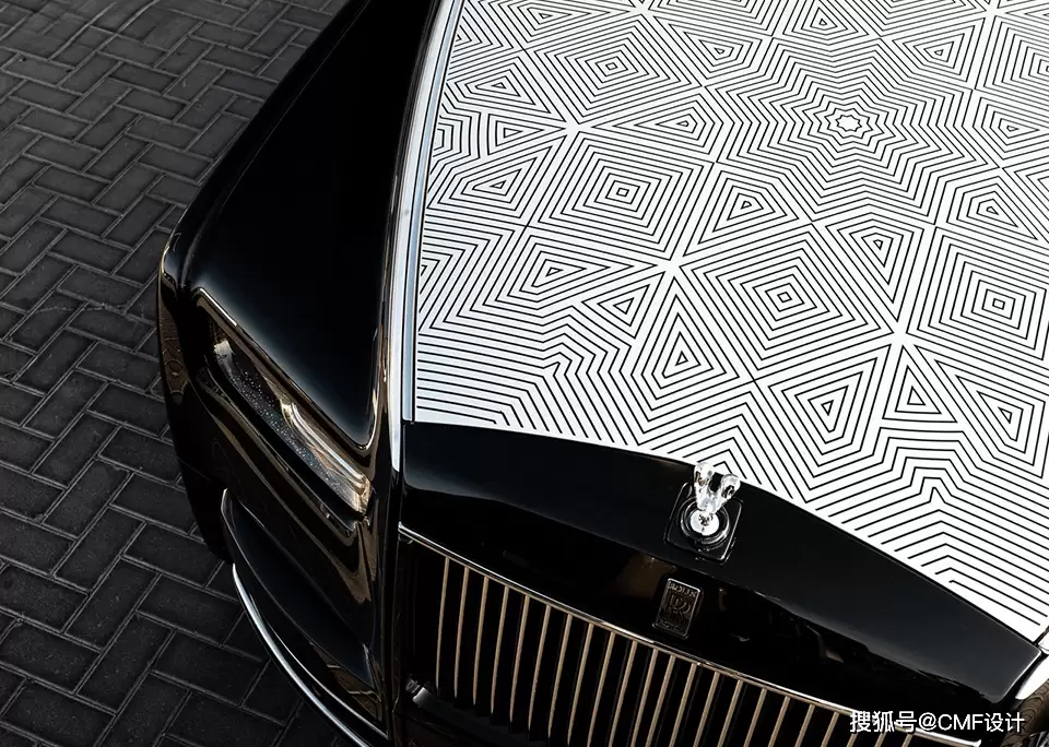 文化符号的转译远不止于此。车内头枕采用黑色真皮刺绣工艺,将木格纹样以对比色呈现,宛如一枚精致的私人印章;迎宾踏板则镌刻着发动机盖纹样的截面,每次开门都成为一场仪式感的落款。更令人惊叹的是,设计师将同源纹样嵌入车身腰线,与Bespoke双色车漆形成视觉对话——钻石黑主车身搭配银色上部饰面,短腰线以同色系手工绘制,在光影流转间展现流动的美感。