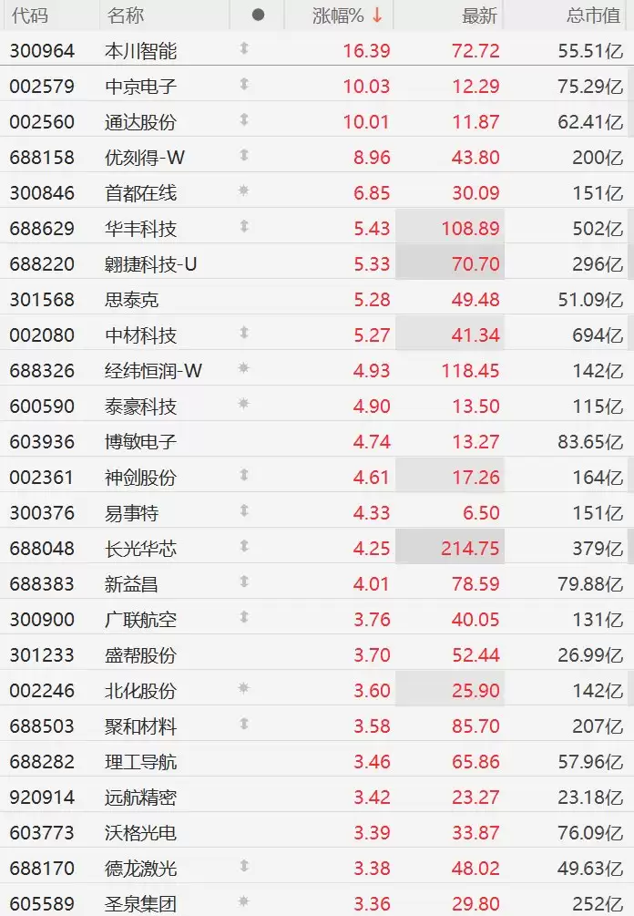 另外,中信建投发布研报称,商业航天的未来是星辰大海,中美均将商业航天放在极高战略高度。SpaceX在星座部署进度、火箭运力及成本、收入体量和估值体量等方面领先。在占频保轨的战略价值以及运营服务的商业价值驱动之下,我国政策从产业和资本市场两方面共同支持商业航天发展,国内发展呈现加速追赶态势,大型可重复使用火箭开始密集首飞,有望逐步打通产业核心瓶颈,加速商业航天产业实现闭环。看好商业航天板块后续表现,卫星环节重点关注载荷总体、天线及配套、激光通信终端及配套、太阳翼及能源系统相关,火箭环节重点关注发动机及其3D打印、箭体结构件相关,地面设备环节重点关注民用终端及手机直连相关,运营服务环节重点关注具备稀缺资质的公司。