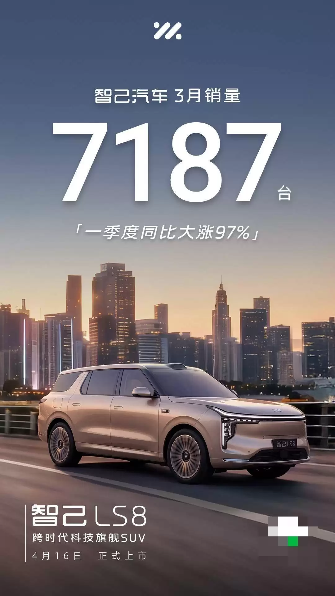 智己汽车3月销量7187辆,一季度激增97%,LS8预售开启