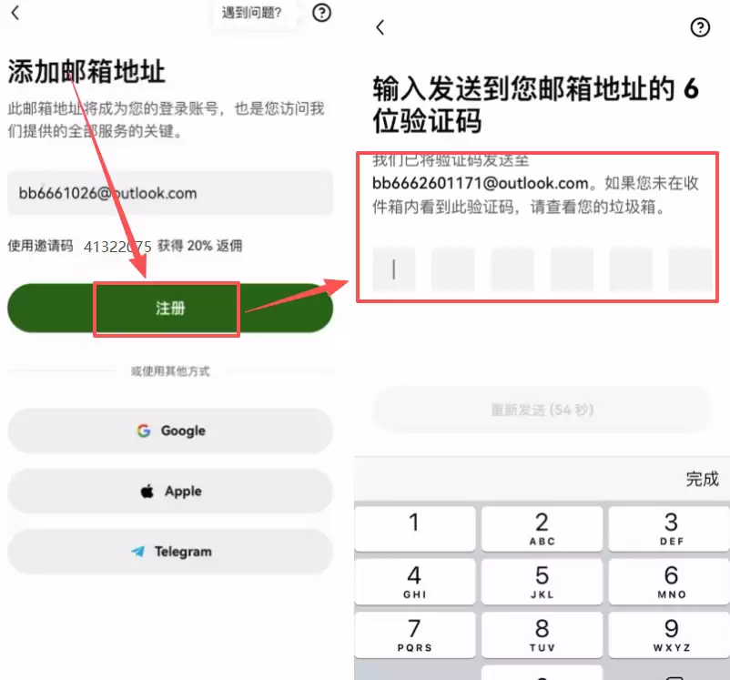 点击注册后,系统会向邮箱发送验证码,填入验证码即可。