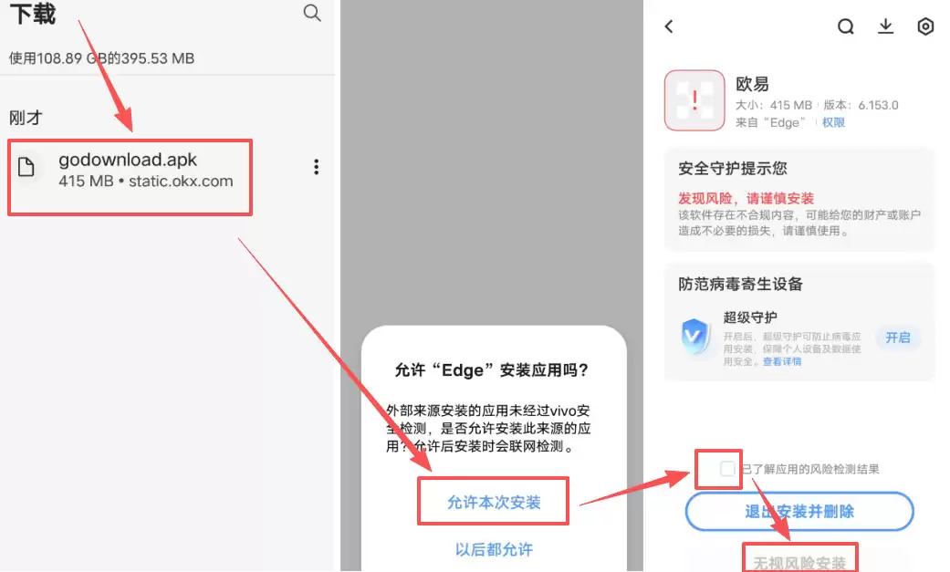 4、再次点击「下载欧易APP」,系统会提示下载APK安装包,点击下载并安装。