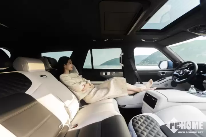 智能座舱方面,全新一代Coffee OS 3系统依托强大的硬件算力,带来了极其流畅丝滑的人机交互体验。座舱内共布局7块高清屏幕,以满足全舱乘客的交互需求。其中,17.3英寸的3K后排吸顶屏与中控大屏均通过莱茵护眼认证,并行业首发了系统级色觉辅助功能,彰显了细致的人文关怀。此外,5.4L智能冷暖冰箱、21扬声器杜比全景声音响系统、全车静音舱技术,以及前排后排均配备通风、加热、按摩功能的“纤云”座椅等顶级配置,共同致力于为每一位乘员提供无微不至的豪华舒适享受。