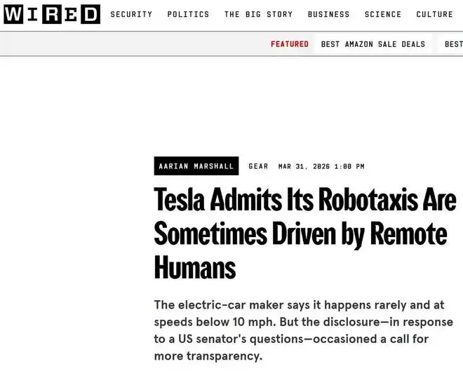 来源:环球网【环球网科技综合报道】4月1日消息,据wired报道称,特斯拉近日向美国参议员埃德·马基(Ed Markey)确认,其无人驾驶出租车(Robotaxi)在特定情况下,可由远程操作员直接接