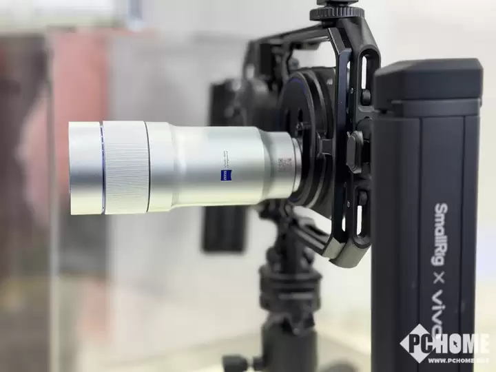 机身背部延续了家族化的圆形相机矩阵设计,辨识度极高。而展台上的专业影像配件成为了绝对主角。这枚高达400mm焦距的增距镜,堪称手机影像配件的“长焦之王”,相比市面上常见的300mm焦段产品,其近百毫米的物理突破,能够带来更优异的远景画质与细节解析力。无论是野生动物摄影、体育赛事抓拍,还是远距离记录风光建筑,它都让手机具备了堪比专业单反相机的超远摄能力。