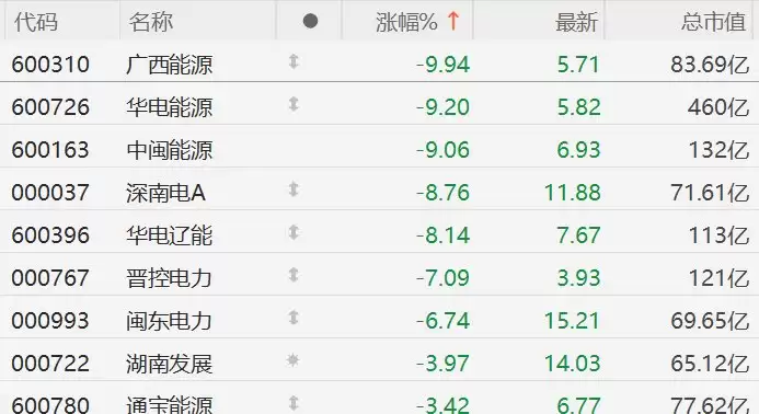 A股电力股重挫:广西能源跌停,华电中闽逼近跌停