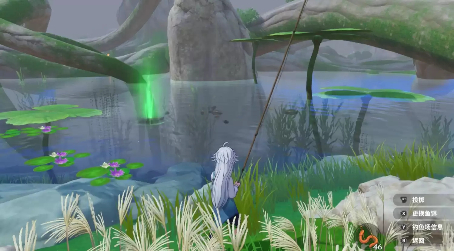 除了饵料选择,实际操作技巧同样是影响成功率的关键。面对幽灵孔雀鱼这类敏捷目标时尤其如此。在风影地带钓鱼,若只是简单抛竿等待,成功率极低。玩家需掌握一项核心技巧:“截击投竿”。即需要将鱼竿精准抛投至幽灵孔雀鱼游动路径的前方。这要求玩家具备敏锐的观察力,能预判鱼的移动轨迹,使鱼钩落点尽可能靠近鱼体。这种从被动等待转为主动拦截的策略,能大幅增加咬钩几率,是完成高难度钓鱼任务必须熟练掌握的高级技巧。