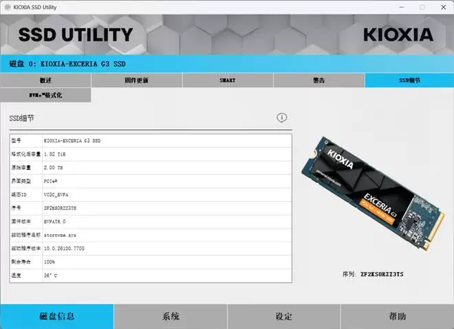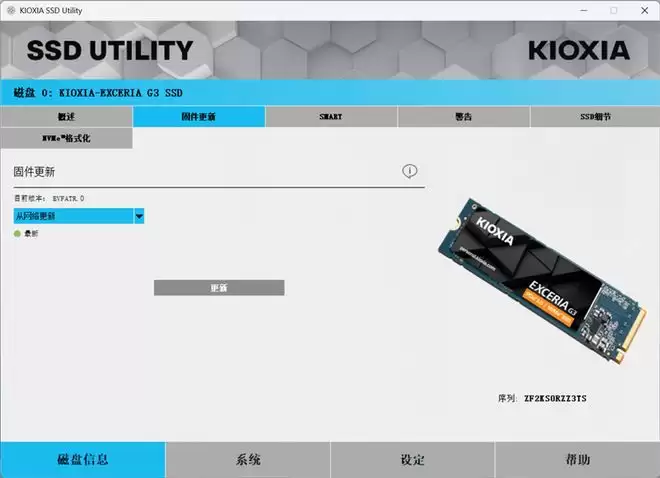 铠侠的SSD Utility也支持检查SSD固件和更新情况。