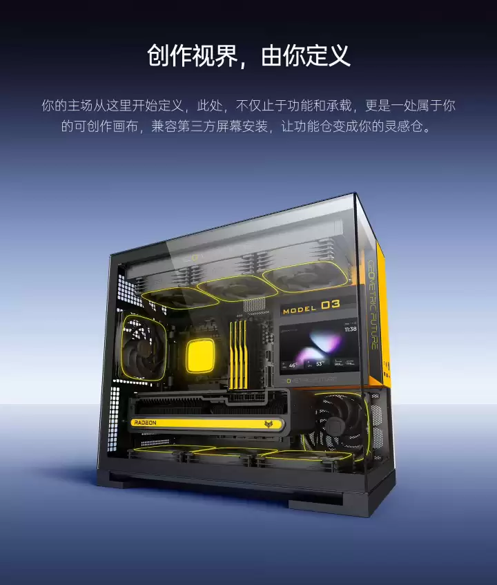几何未来 Model 3 机箱深度解析:创新前上置电源,融合手办展示与副屏拓展