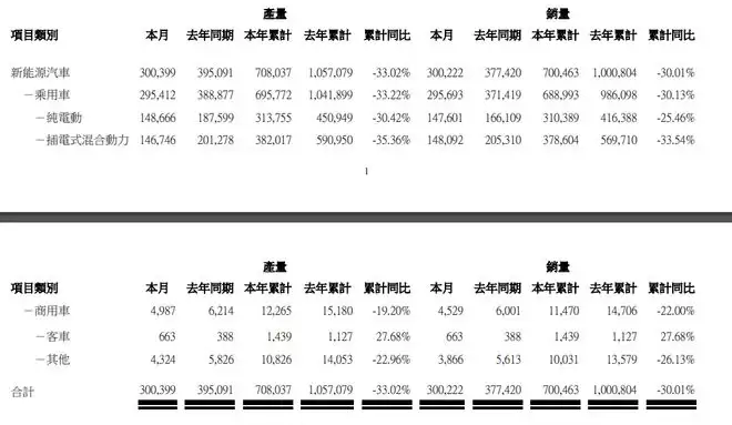 4月1日,比亚迪股份(01211 HK)港交所公告,3月新能源汽车销量30 02万辆,去年同期37 74万辆。新能源汽车本年累计销量70 05万辆,同比下降30 01%。