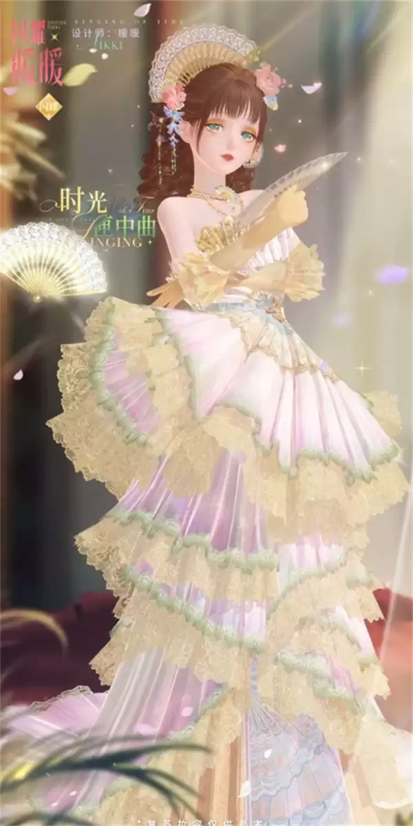 本次活动的焦点,无疑是这套由暖暖亲自设计的闪耀品质套装【暖暖·春光画扇屏】。设计概念融合了明媚春色与传统书画艺术中的扇屏美学。服装廓形充满东方典雅气息,并细腻点缀春花卉图案,整体犹如一件可穿戴的流动春日画卷,尽显国风雅韵。